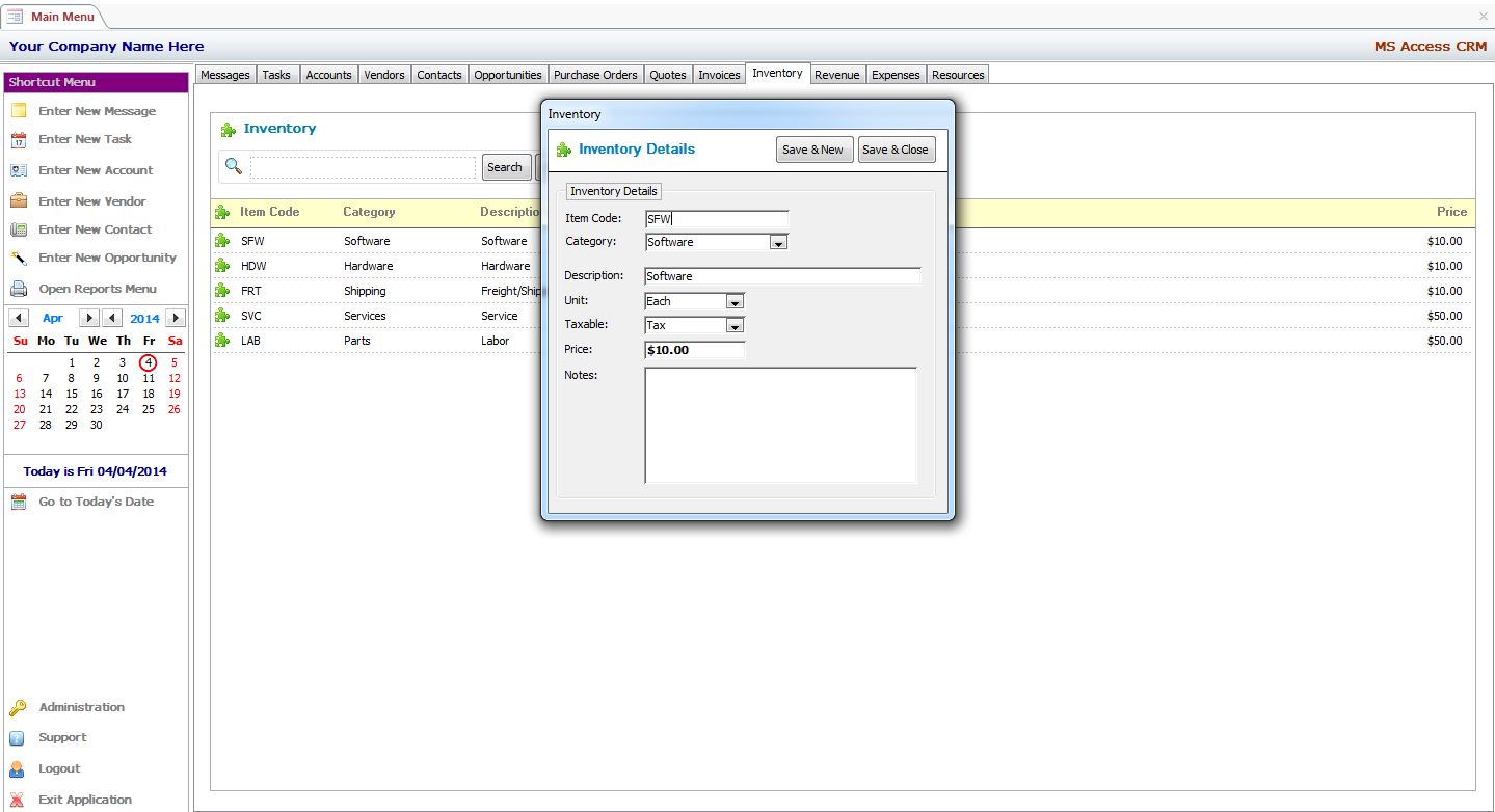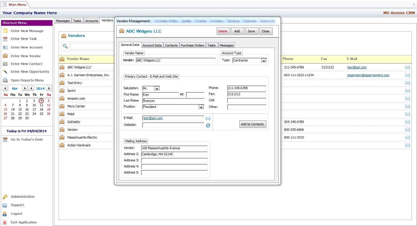 MS Access CRM is Ready to Use As-Is or is Fully Customizable by Advanced MS Access Users, Computer Consultants and Experienced Programmers. If You Need Special Features, We Offer Fee Based Support to Advanced Users, Computer Consultants and Experienced Programmers Along with Fee Based Customization Services for Small and Large Businesses. Contact Us For a FREE Quotation to Provide Support or to Customize the CRM Database to Suit Your Needs.